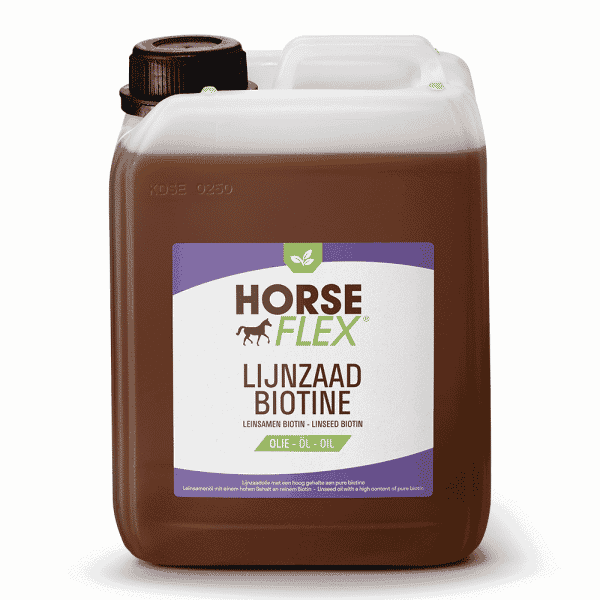 Könnten die Hufe und das Fell Ihres Pferdes oder Ponys zusätzliche Pflege gebrauchen? HorseFlex Leinsamen-Biotin-Öl enthält eine hohe Dosis reines Biotin, ist natürlich reich an den Vitaminen A, -D, -E, -K und essentiellen Omega-Fettsäuren. Das flüssige Ergänzungsfuttermittel zur Erhaltung starker, gesunder Hufe, eines gesunden Fells, einer gesunden Mähne und eines gesunden Schweifs. Ein einzigartiges und 100% natürliches Produkt, ohne Zusatz von Zucker, Farb- oder Aromastoffen!